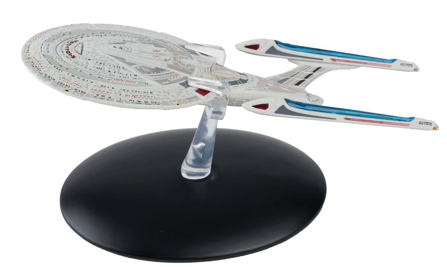 As is typical in the series, the bulk of the saucer section of this model is the metal component, with part of the lower side of the saucer a plastic insert. The nacelles and roll bar are also plastic, and like many of the other ships, the nacelles feature translucent blue plastic; which gives them a glow effect in the right light conditions.