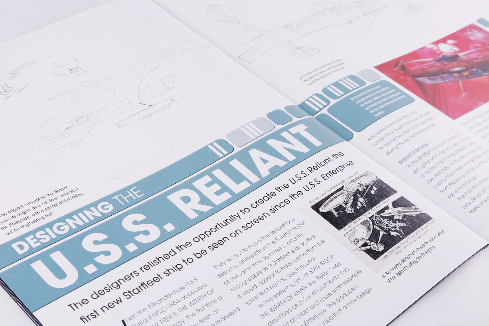 The magazine for this issue follows the standard format, with all the focus on the ship, and none of those pesky filler articles. The in-universe front half of the magazine gives us the usual four-page history of the ship, followed by a two page "Classic Scene", in this case the Battle of the Mutara Nebula, and then a two page spread with orthographic views of the ship.