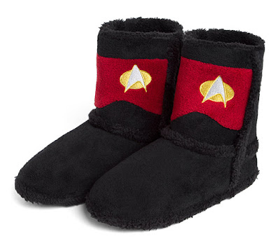 If you're feeling a bit chilly while while admiring your coin collection, ThinkGeek's new TNG-uniform style slipper boots should warm up your toes. They are of course available in all three department colours.