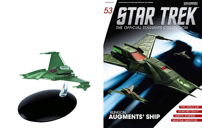 The two new ships in Eaglemoss'Star Trek: The Official Starships Collection were both pretty obscure ones in August: Issue fifty-two the USS Centaur, and issue fifty-three the small Klingon attack ship from the Klingon-augment arc in Enterprise.