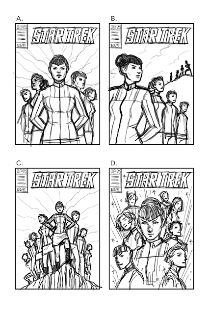 On Twitter, Jen Bartel, the artist of the second cover here, has shared some of development work for the design, including the layout sketches below, and some character profiles. Check out Twitter to see everything.