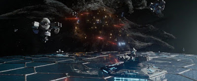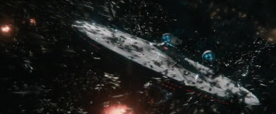 Another view of the Enterprise in the swarm attack. Note the really cool red windows from the red alert lighting (although kind of giving your alert status away to an opponent? - I guess they can tell if you raise shields and arm weapons anyway).