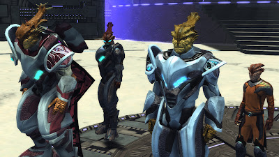 Aside from dinosaur awesomeness, the Voth themselves also have a role to play in all this, and have got an STO make-over as result, with greater variety in their look. As if dinosaurs aren't enough, they also have mechanical exosuits to give them the upper hand. Here are a few examples, you can read more about the Voth and their tech in the above linked STO blogs as well: