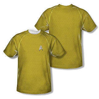 The TOS movie uniforms sadly haven't been included in the range. But the movie-era is represented by a Klingon armour design, and Khan (the latter of which was in fact one of Trevco's first sublimation designs last year):