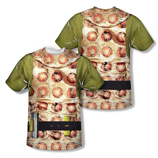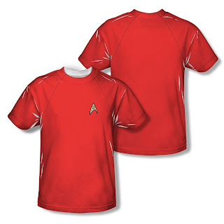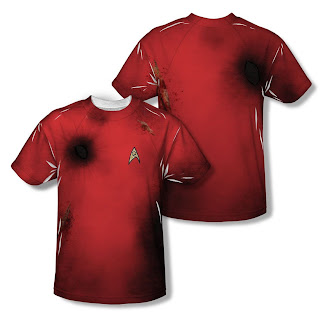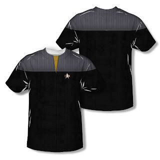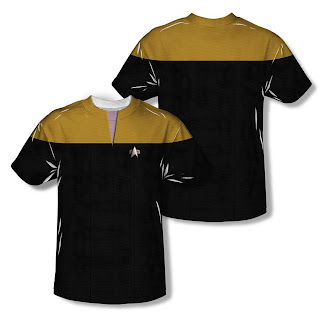 Trevco have been releasing impressive full bleed sublimation print design Star Trek T-shirts for a while now, extending a variety of designs to cover the entire surface of a T-shirt, rather than the traditional rectangular window. Their latest wave of releases in this format makes great use of the technique to give a huge range of Star Trek costume designs, including uniforms from all eras, and a few one-off characters and joke costumes.