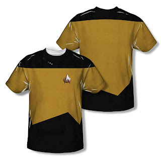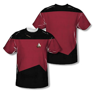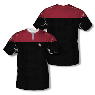 Moving on to the TNG era we have the regular command, science, and operations shirts, plus a Worf shirt with the baldric: