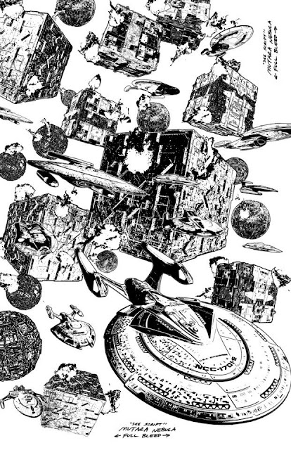 In other Trek comics news, Joe Corroney has posted a gallery full of his line art (pre-colouring) from the Hive series, demonstrating his insane level of drawing detail! Here are some delicious pages of starship porn (reminds me of some of my greatest Star Trek: Armada battles), there's plenty more on Facebook: