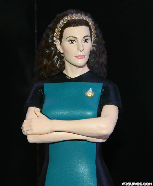 Diamond Select Toys had plenty of Trek stuff to show off in their booth at this weekend's San Diego Comic Con, but there's just one entirely new reveal, which is their second Star Trek Femme Fatale statue. Joining the existing provocatively posed Seven of Nine PVC statue will be Deanna Troi, who has a bit more of a no-nonsense attitude about her, while sporting her pilot episode mini-dress uniform.