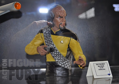 The rest of the display was all stuff that has previously been previewed, the brand new Romulan Bird of Prey, the updated reissue of the Enterprise NX-01, and the Worf bust bank.